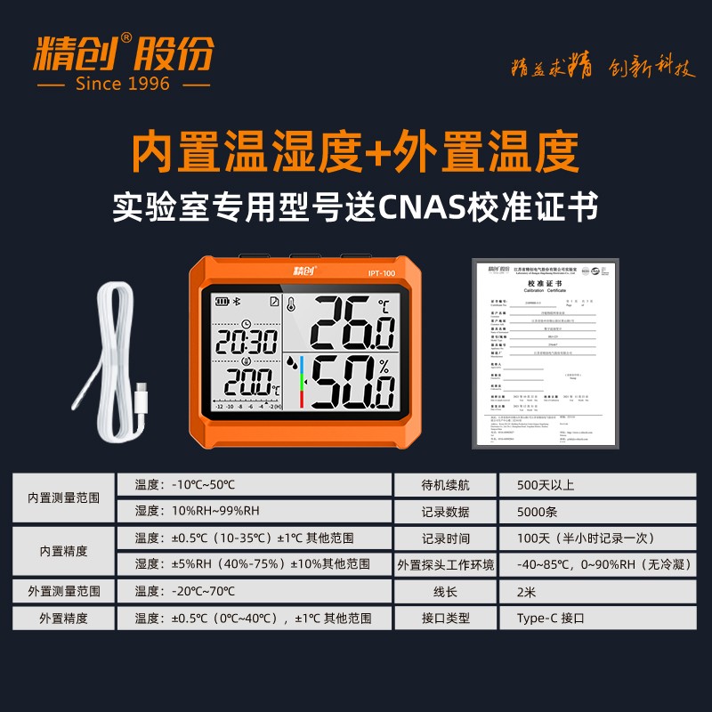 IPT-100S内置温湿度+外置温度