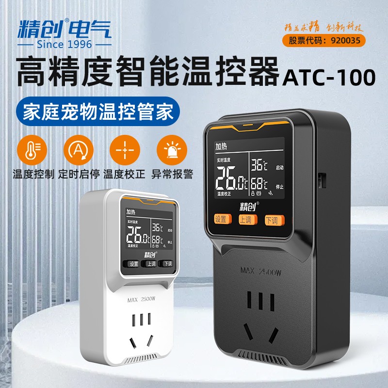 精创ATC-100温控开关鱼缸地暖全自动可调温智能温控插座爬...