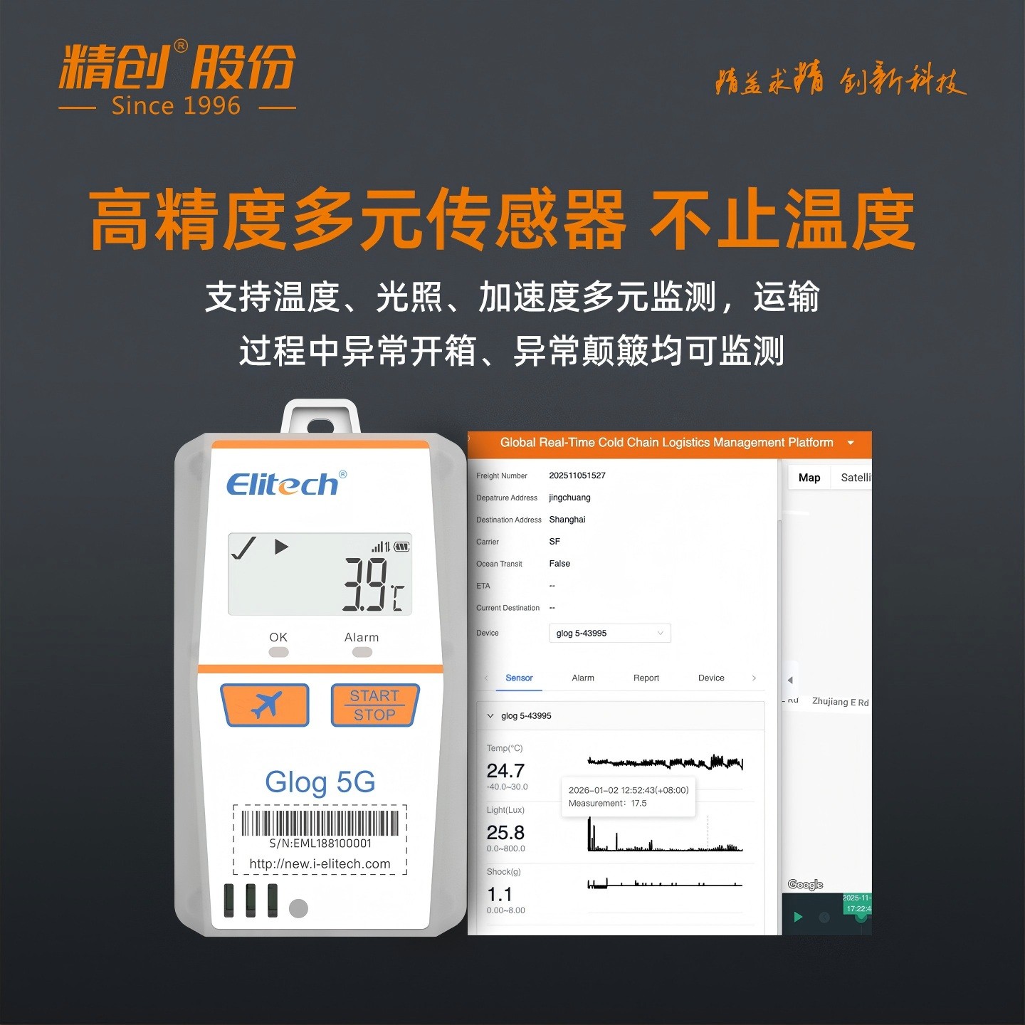 精创Glog5全球跨境运输4G一次性实时远程温湿度记录仪冷链...