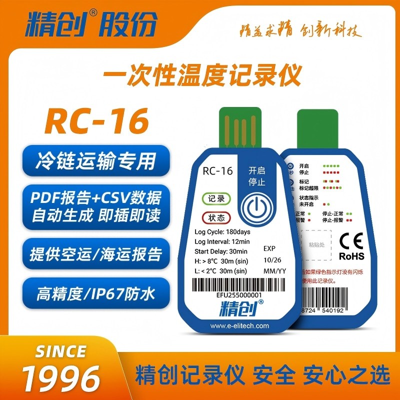 精创RC-16一次性USB温度记录仪 生鲜水果冷链运输带空运海运报告