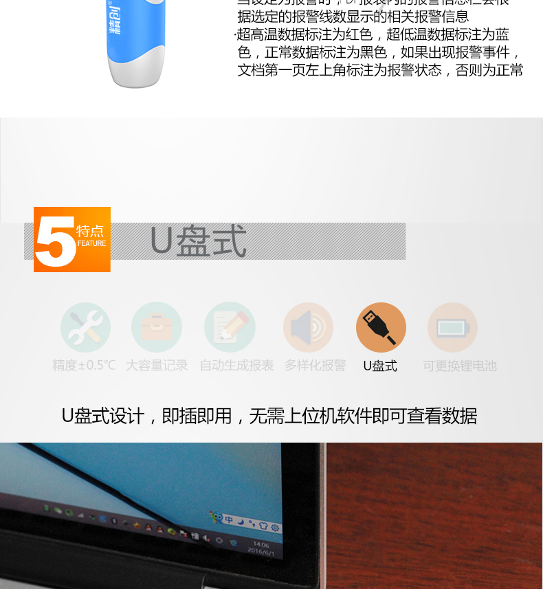 精创TLOG系列高精度温度记录仪快速测温冷库冷链运...