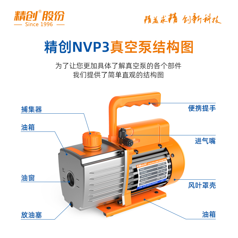 精创真空泵小型单级泵NVP-3/5防返流空调抽气泵抽真空泵